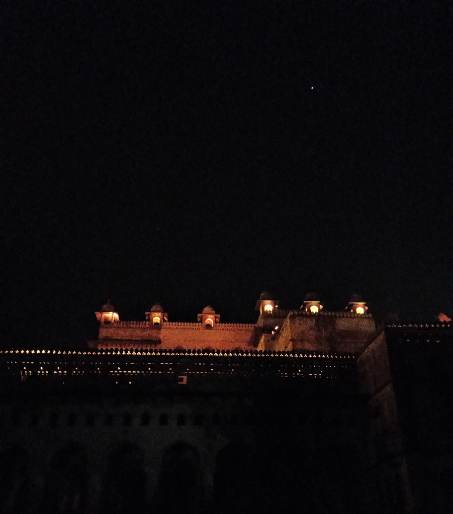 As we went to our seats, I couldn’t help but notice that other than a middle-aged couple, there was no one else. Sitting in the unlit fort complex under the bright twinkling stars, peace enveloped us. Orchha is surrounded by lush greenery, aided by the Betwa river on whose banks the town rests. The river bestows a freshness to the air which is even more evident during the night when temperatures drop drastically. Not having read anything about this town or its history, we didn’t expect much. To say that we were surprised is an understatement. What followed was almost an hour of the neatly narrated history of this town, its kings, and the mark they left behind in the architecture they commissioned.