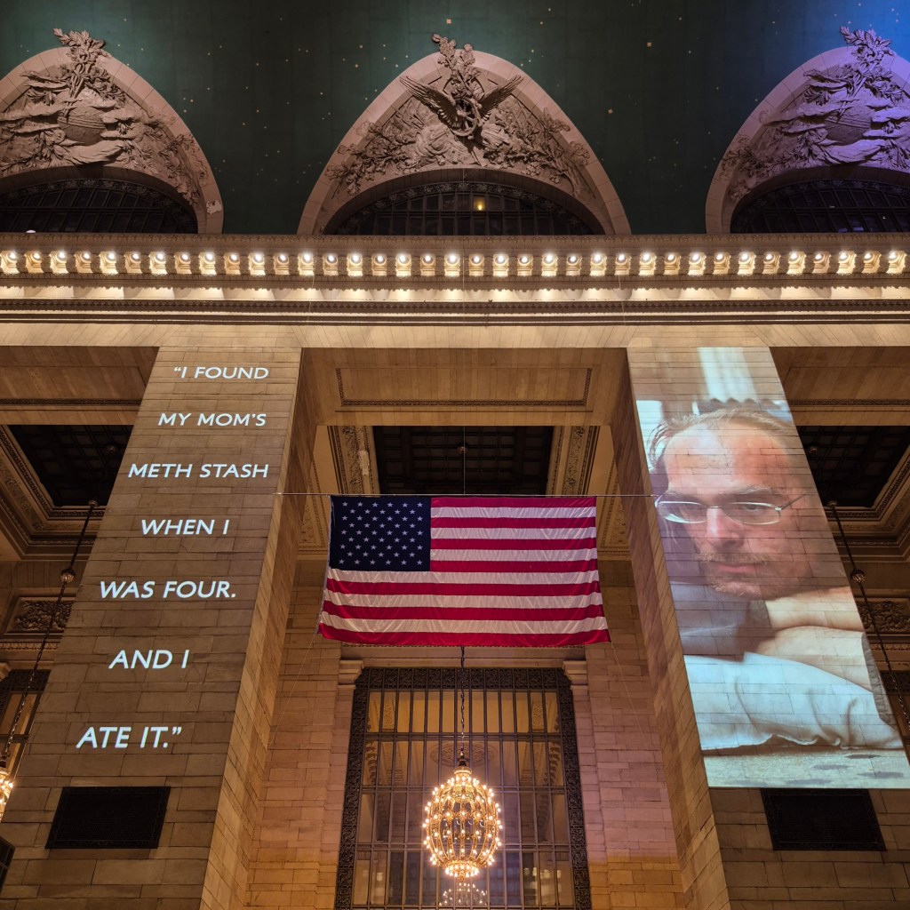 The faces and stories of everyday New Yorkers being beamed on the walls of Grand Terminal